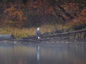 The Kokanee are spawning on the shores of Horsefly Lake and the eagles are here feasting.  The bald eagles look very regal but they do not rule the show here – the larger Golden Eagles get first choice and defend their territory ferociously!